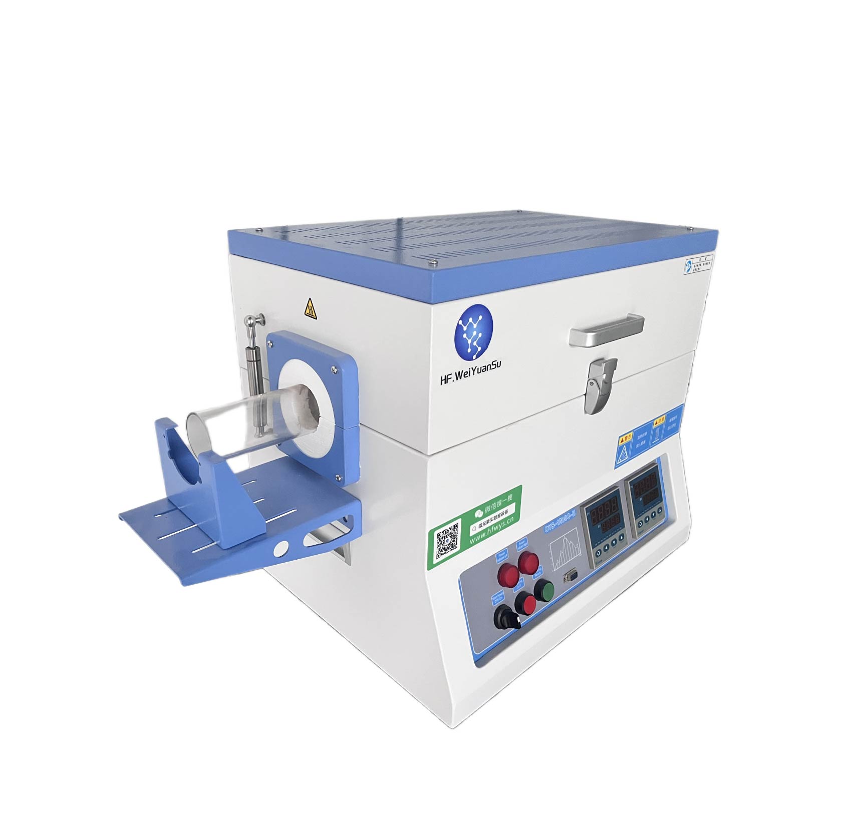 ?控溫系統:兩個溫區分別有兩個獨立的溫控系統控制;包含一款YD858型溫度控制器;PID控制和自整定調節,智能化50段可編程控制,具有超溫和斷偶報警功能;控溫精度±1℃;默認DB9PC通信連接端口;可選購電腦溫度控制軟件(用于YD858P系列控制器)用于控制升溫曲線和導出數據。