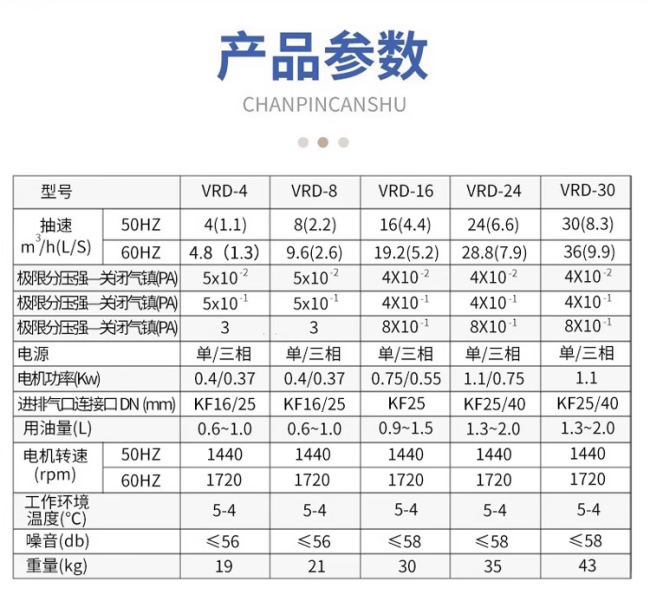 真空泵參數:
