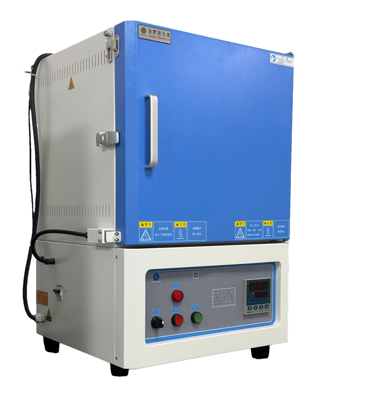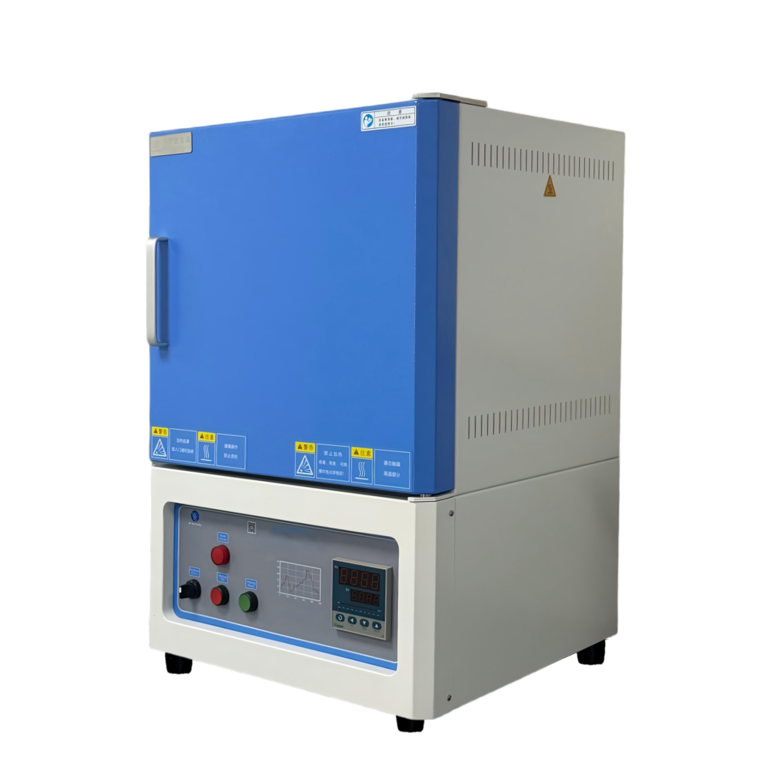 ?爐體結(jié)構(gòu):采用雙層殼體結(jié)構(gòu),并帶有風(fēng)冷系統(tǒng);爐膛采用高純氧化鋁纖維材料,最大程度的減少能量損失;內(nèi)爐膛表面涂有美國進(jìn)口的高溫氧化鋁涂層,可以提高反射率及設(shè)備的加熱效率,同時也可以延長儀器的使用壽命,帶有過熱和斷偶保護(hù);爐膛內(nèi)兩面加熱,加熱速率快,溫場均勻;爐門配有安全限位開關(guān),并且爐門上安裝有一個保護(hù)門閂,防止意外開啟及爆炸。