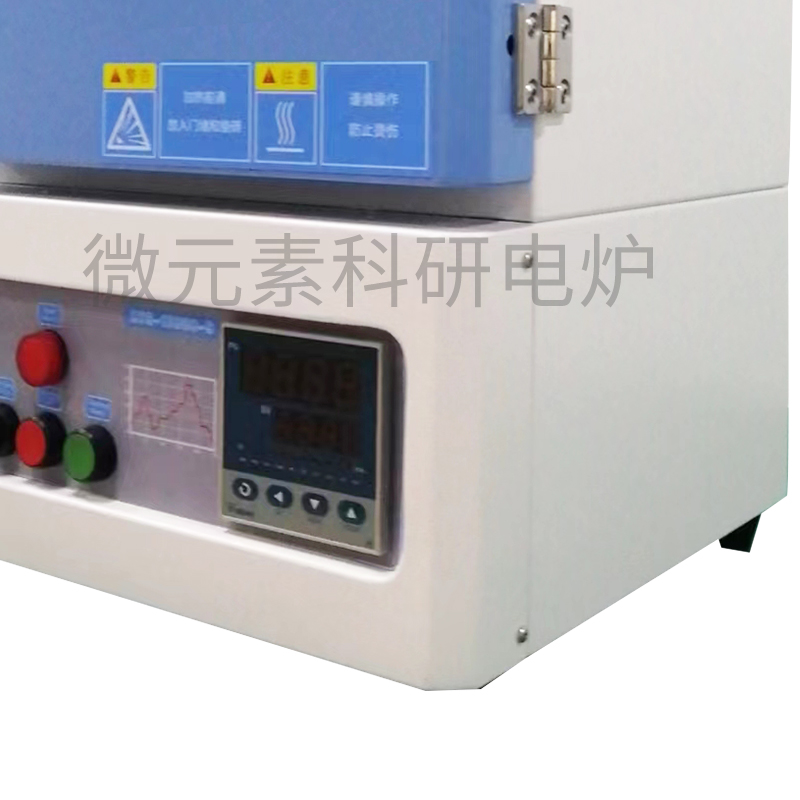 ?爐體結構:采用雙層殼體結構,并帶有風冷系統;爐膛采用高純氧化鋁纖維材料,最大程度的減少能量損失;內爐膛表面涂有美國進口的高溫氧化鋁涂層,可以提高反射率及設備的加熱效率,同時也可以延長儀器的使用壽命,帶有過熱和斷偶保護;爐膛內兩面加熱,加熱速率快,溫場均勻;爐門配有安全限位開關,并且爐門上安裝有一個保護門閂,防止意外開啟及爆炸。